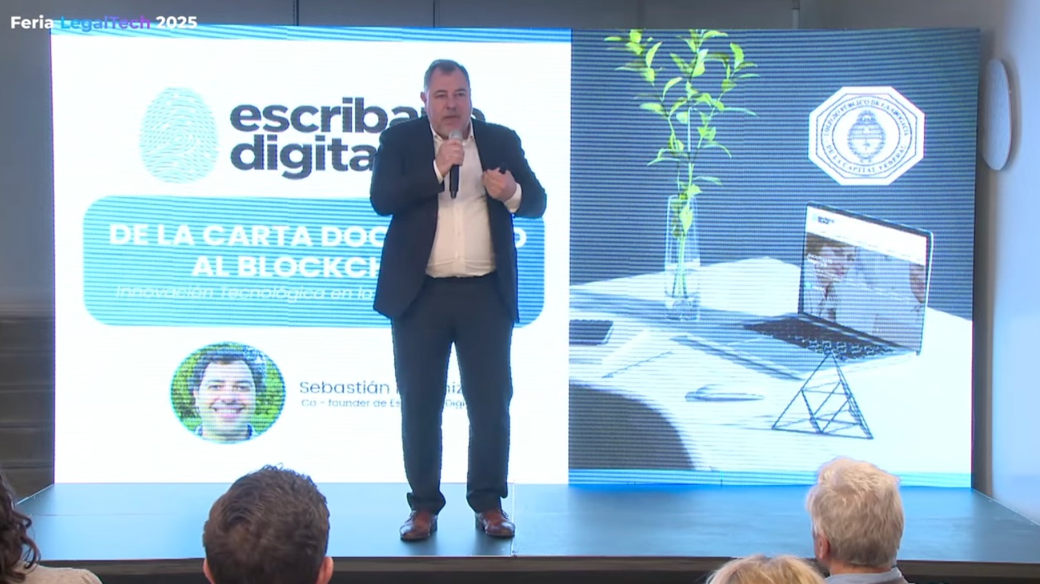 “La tecnología no reemplaza la seguridad jurídica, la potencia”, destacó Sebastián Invernizzi al cierre de su presentación en la Feria Legal Tech 2025, donde compartió cómo blockchain y la inteligencia artificial están transformando el modo en que certificamos, notificamos y damos fe en el entorno digital.